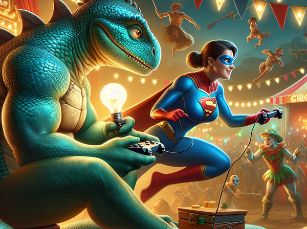 Bulbasaur and Captain Marvel playing Video Games in a Circus -