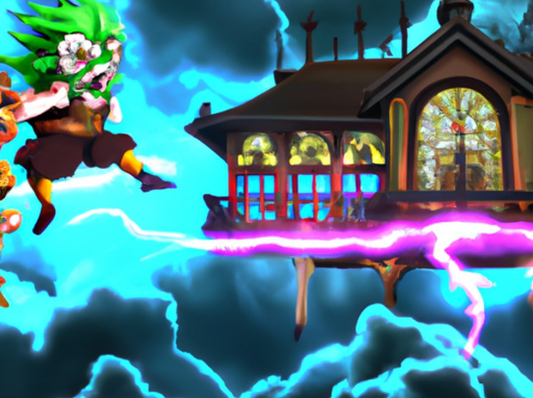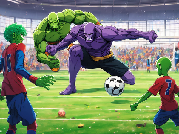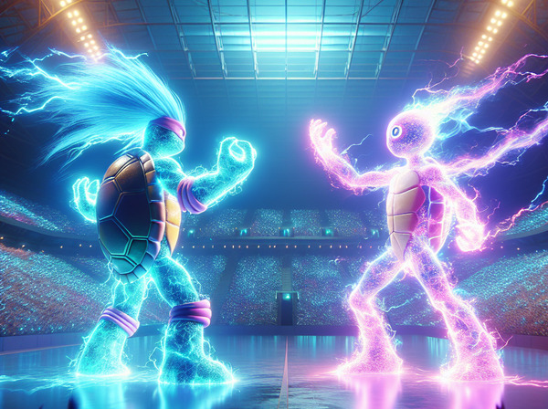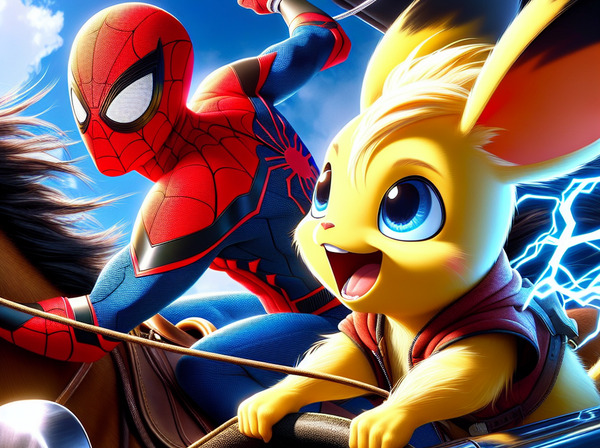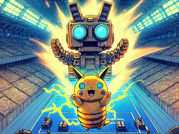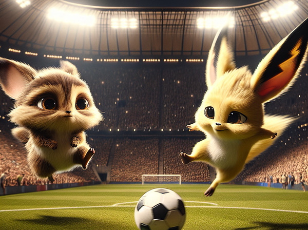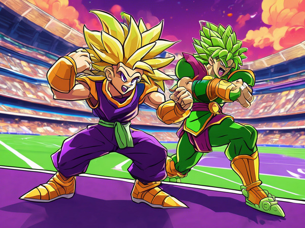 Pikachu and Thanos going Super-Saiyan fusion at a Stadium -