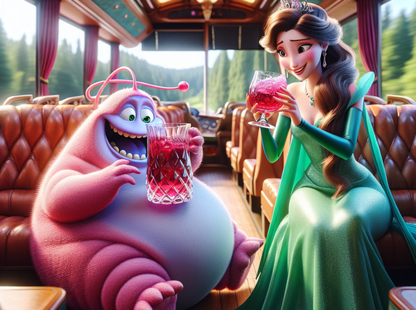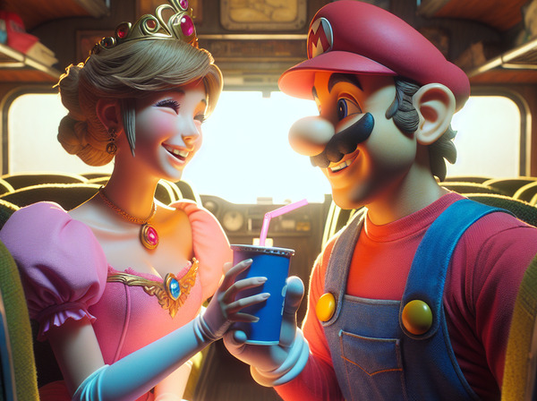 Piccolo and Princess Peach enjoying a Drink in the Grass -