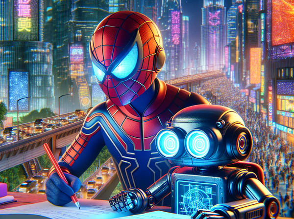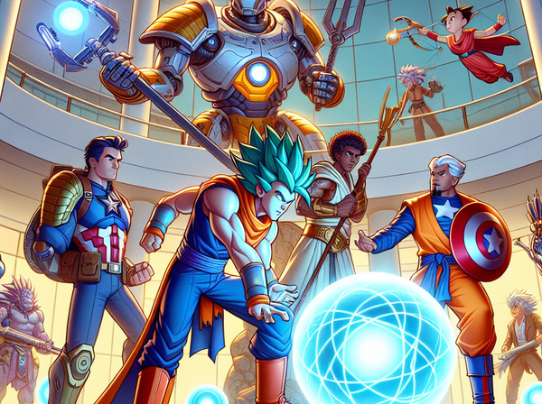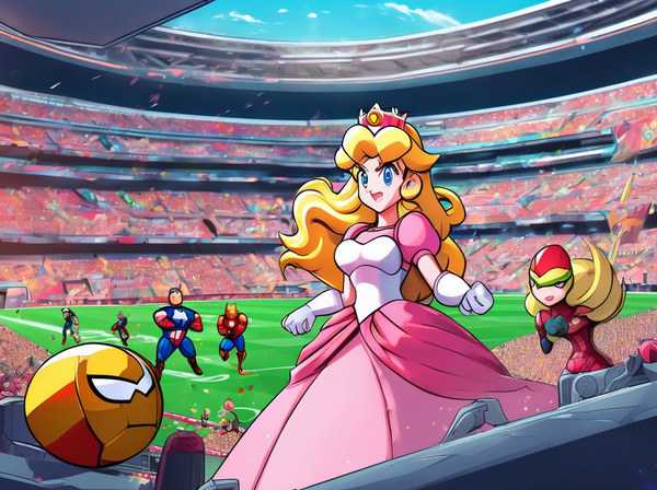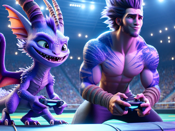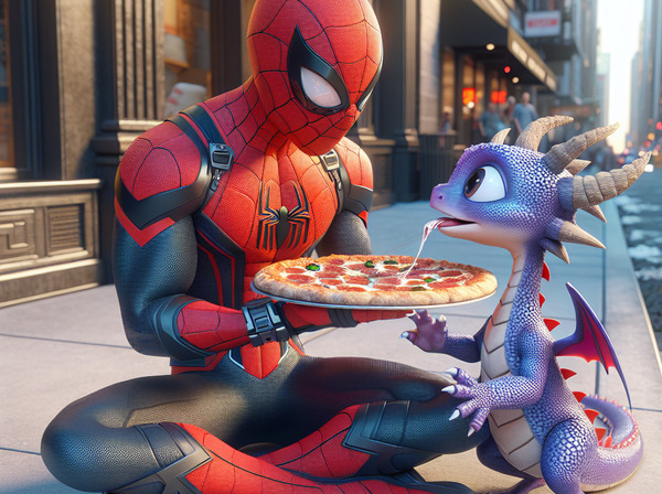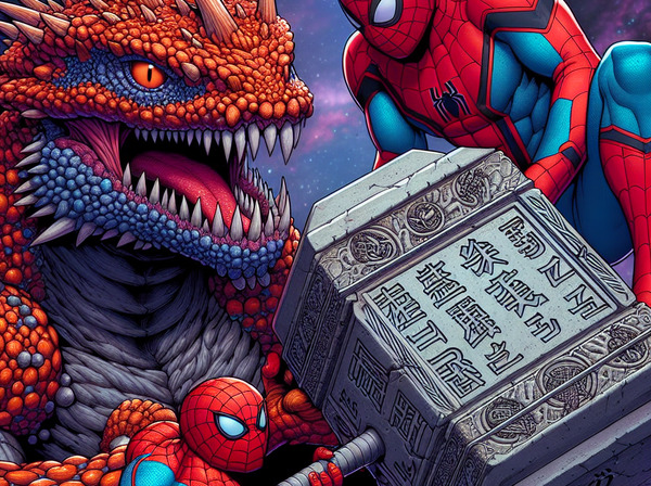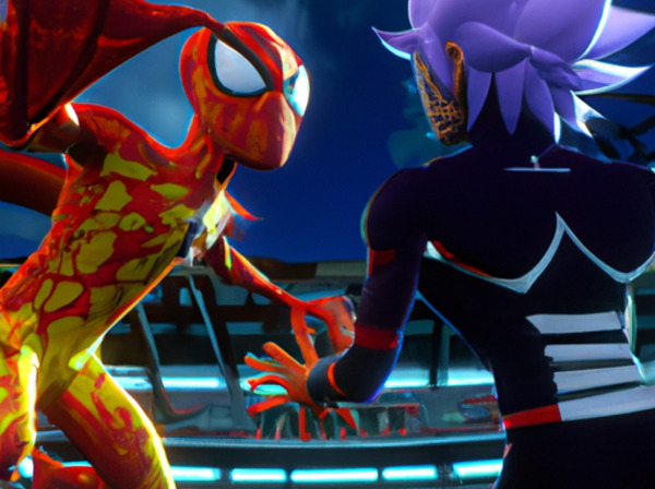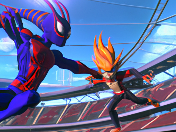 Spider-Man and Spyro the Dragon going Super-Saiyan fusion at a Stadium -