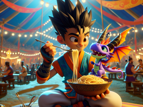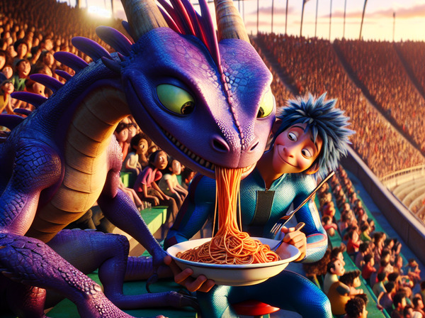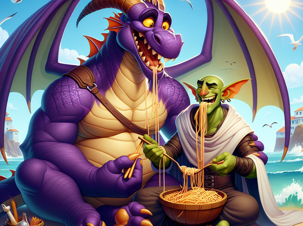 Spyro the Dragon and Piccolo eating tasty Spaghetti at the Beach -