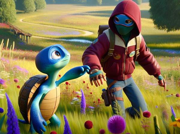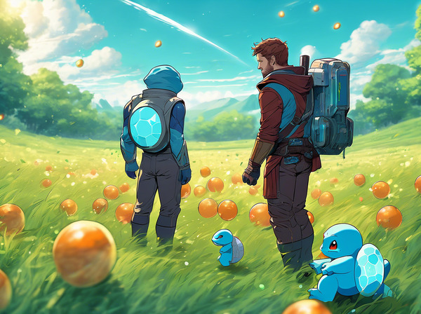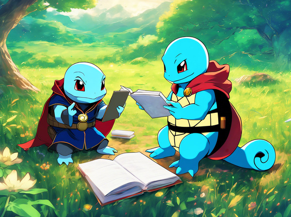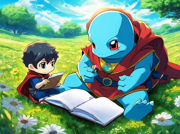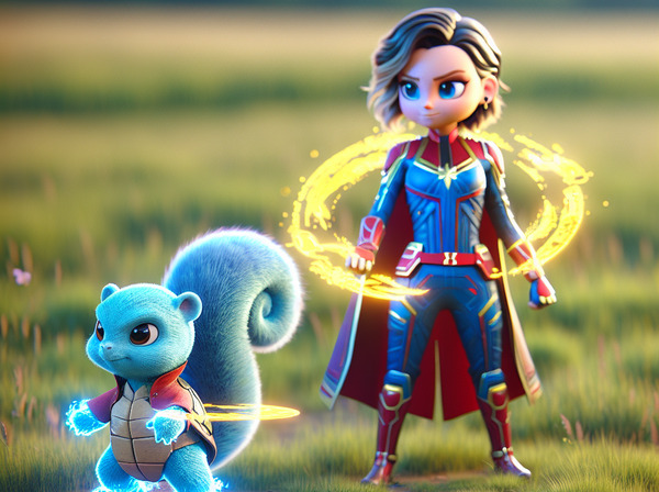 Squirtle and Captain Marvel going Super-Saiyan fusion in the Grass -