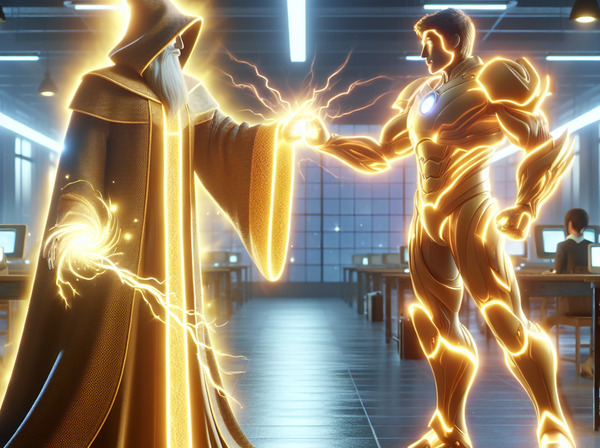 Doctor Strange and Kakarot going Super-Saiyan fusion at the Stark Tower -