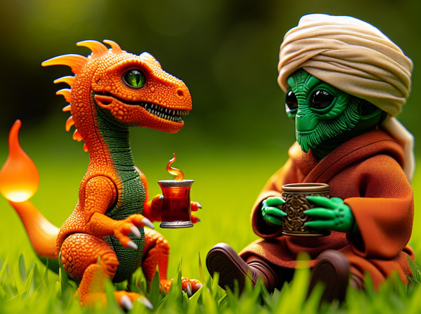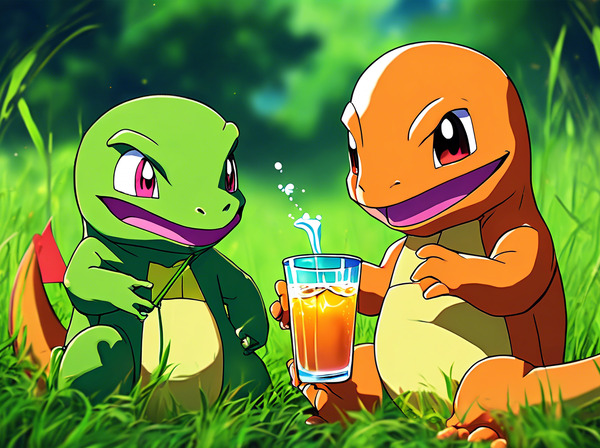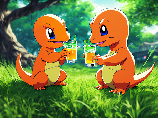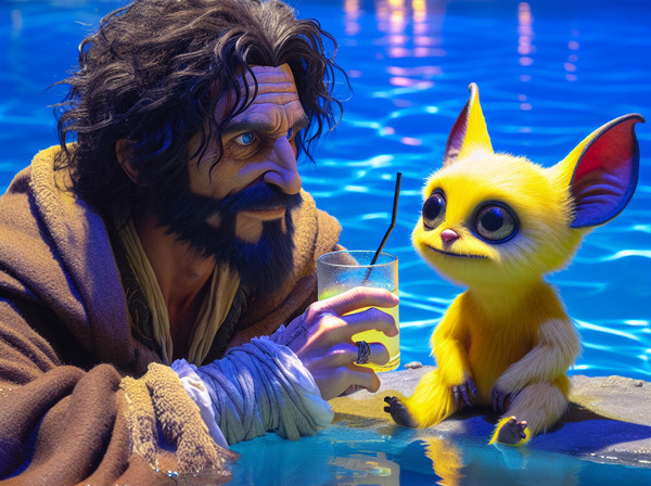Charmander and Starlord enjoying a Drink in the Swimming Pool -