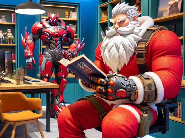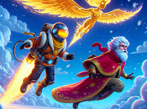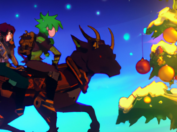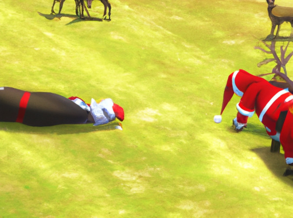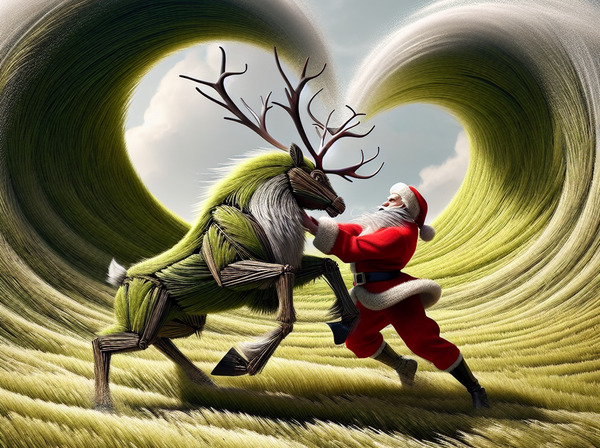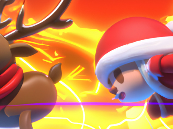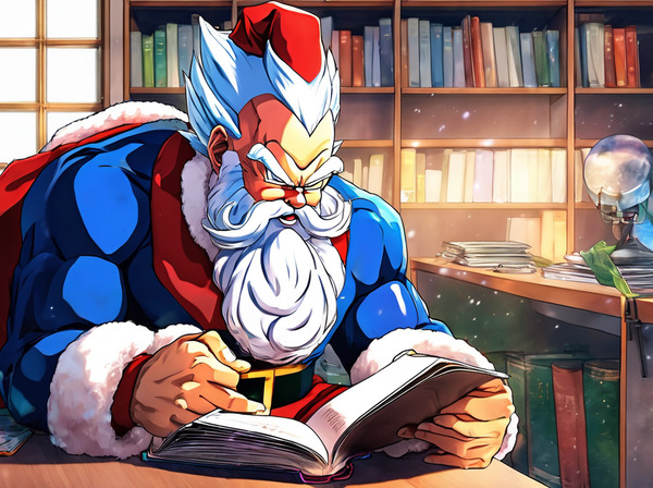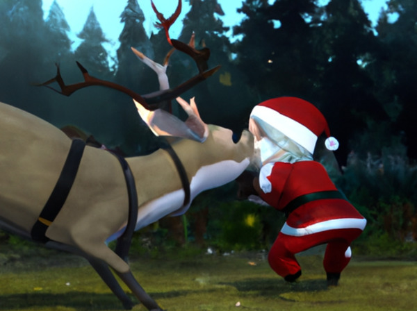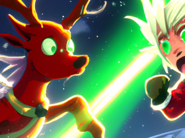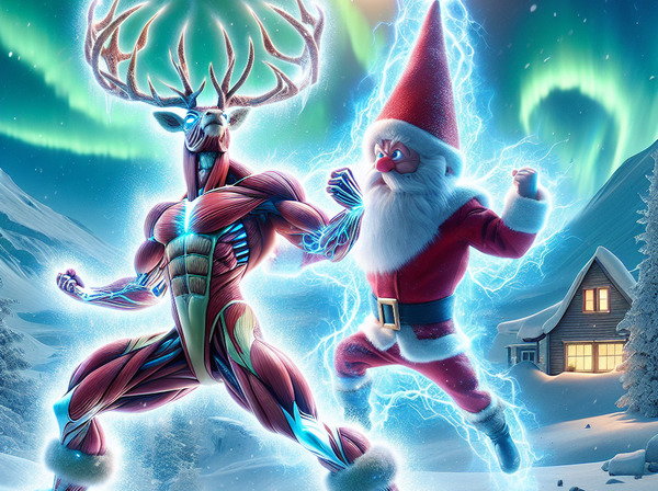 a Reindeer and a Christmas Gnome going Super-Saiyan fusion at the Northpole -