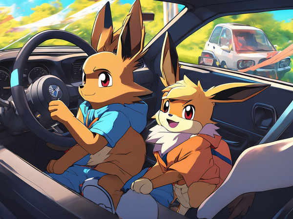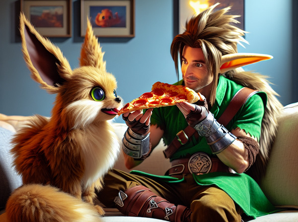 Iron Man and Eevee eating Pizza together at the Stark Tower -