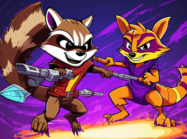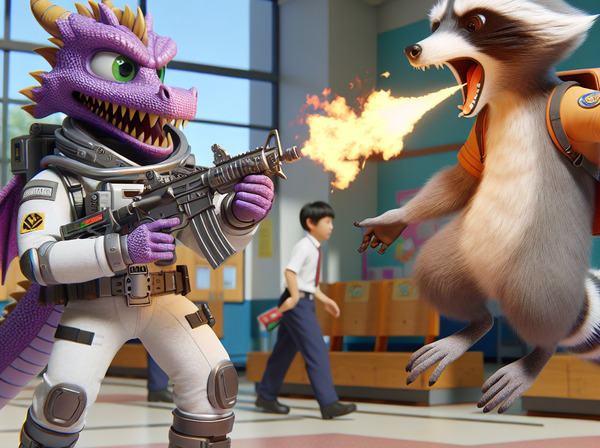 Rocket Raccoon and Spyro the Dragon fighting against each other in the School -
