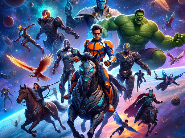 Pikachu and The Avengers flying with Nimbus in a Circus -
