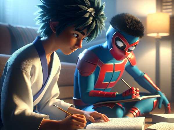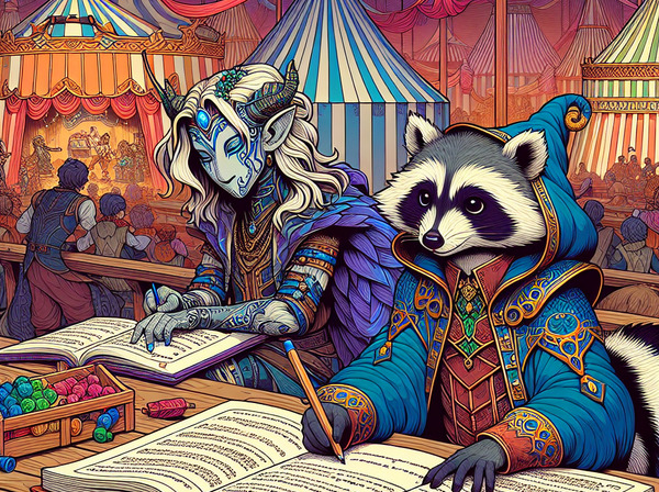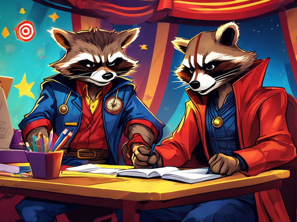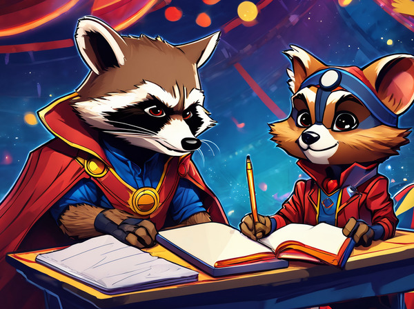 Rocket Raccoon and Doctor Strange doing Homework in a Circus -