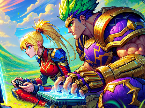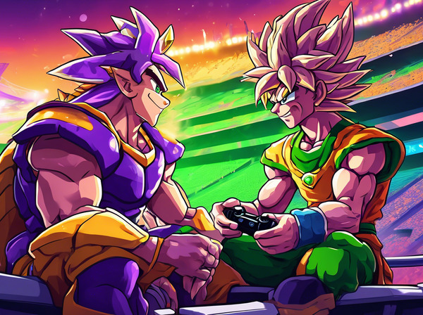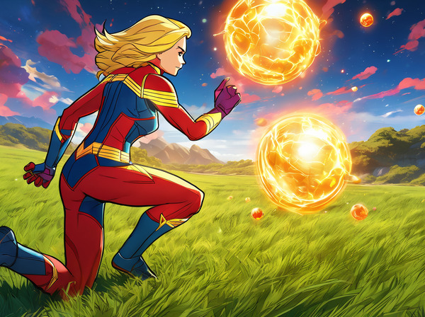 Captain Marvel and Broly playing Video Games in the Meadow -