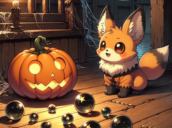 a Pumpkin and Eevee finding the Dragonballs in a spooky House -