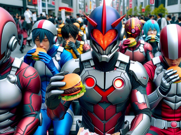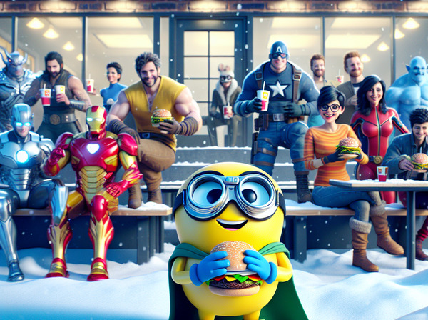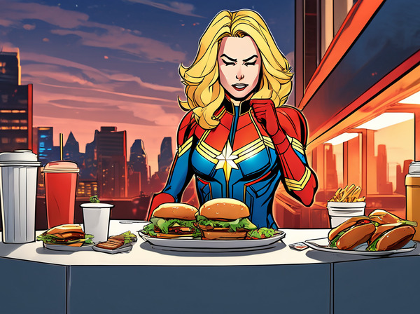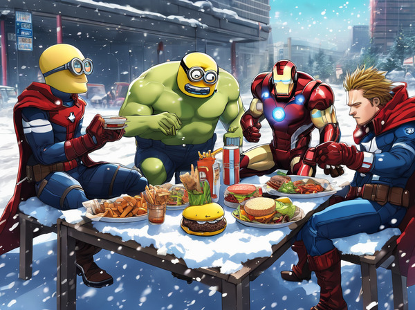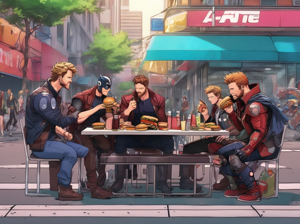 Bowser and Captain Marvel eating some Burgers at the Stark Tower -