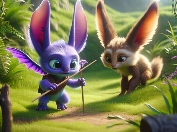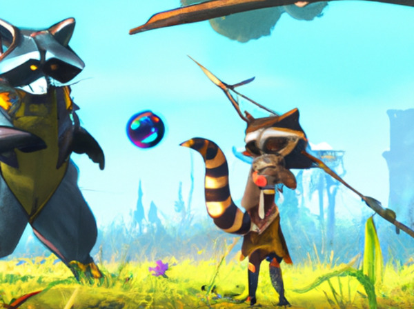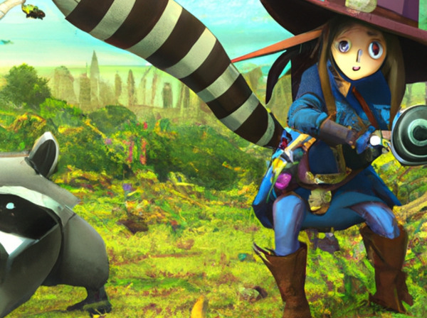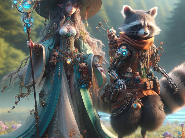 a Witch and Rocket Raccoon finding the Dragonballs in the Meadow -