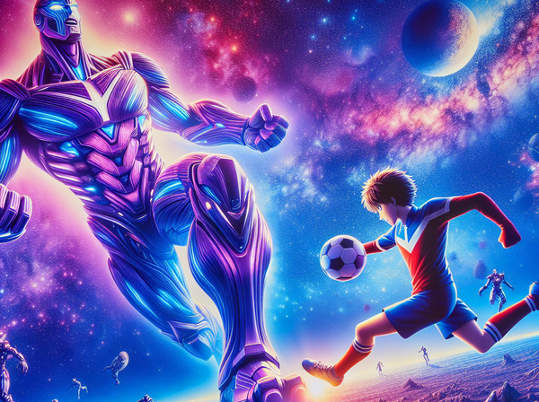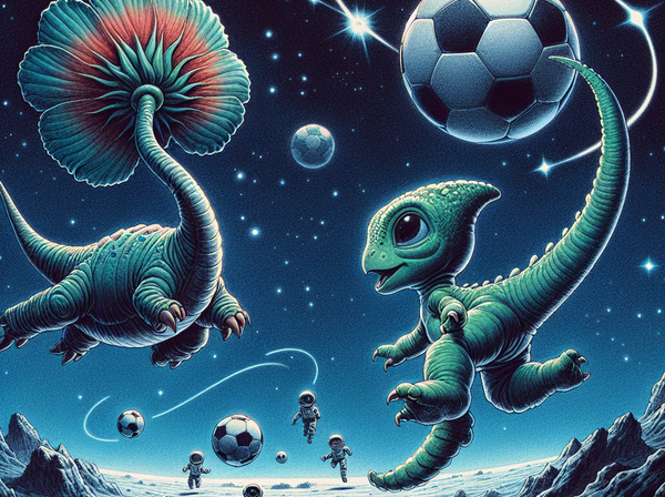 Bulbasaur and Bowser playing Soccer in outer Space -