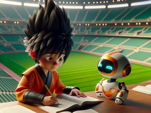 Zelda and Son Goten and Trunks working hard at a Stadium -