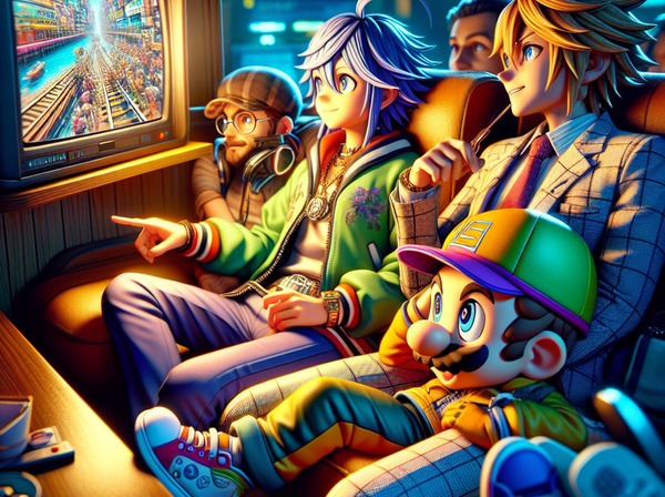 Super Mario and Goku sunbathing with a Cocktail in the City -