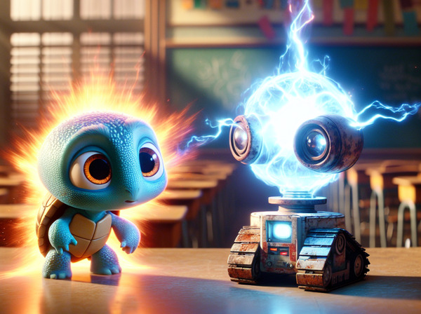 Wall-E and Pikachu going Super-Saiyan fusion at a Stadium -