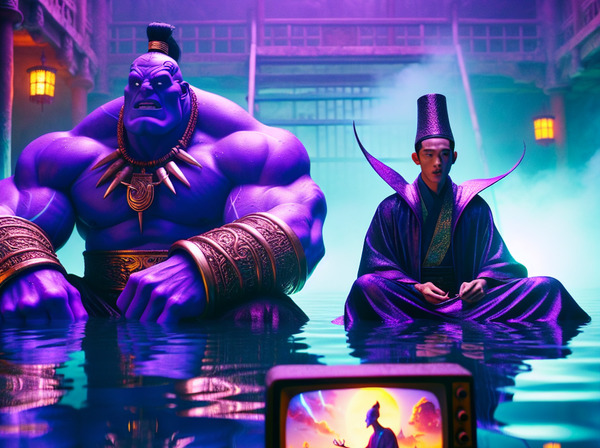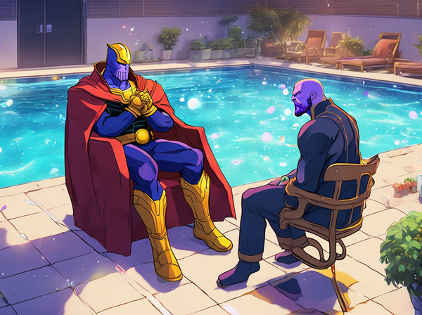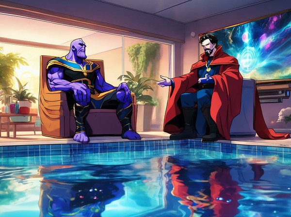 Thanos and Doctor Strange watching TV in the Swimming Pool -