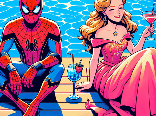 Spider-Man and Zelda sunbathing with a Cocktail at the Stark Tower -