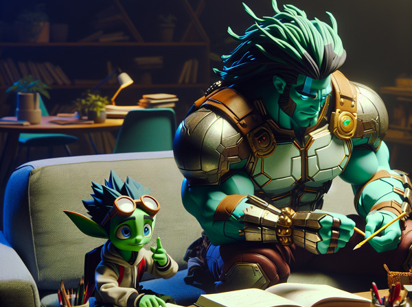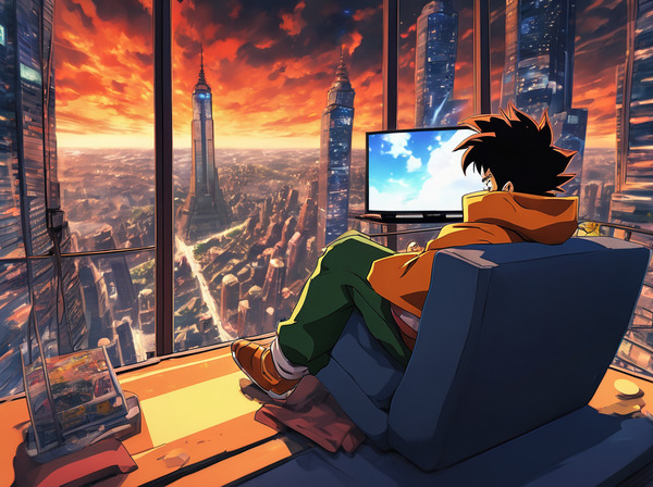 Piccolo and Kakarot playing Video Games at the Stark Tower -