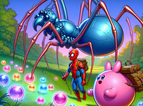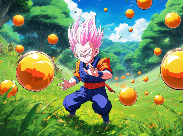 Spider-Man and Majin Boo finding the Dragonballs in the Meadow -