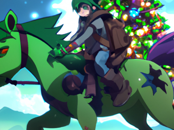 Bulbasaur and Starlord riding a Horse at the Christmas Tree -
