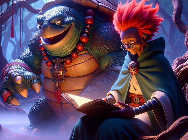 Bowser and Doctor Strange reading a Book in a spooky Forest -