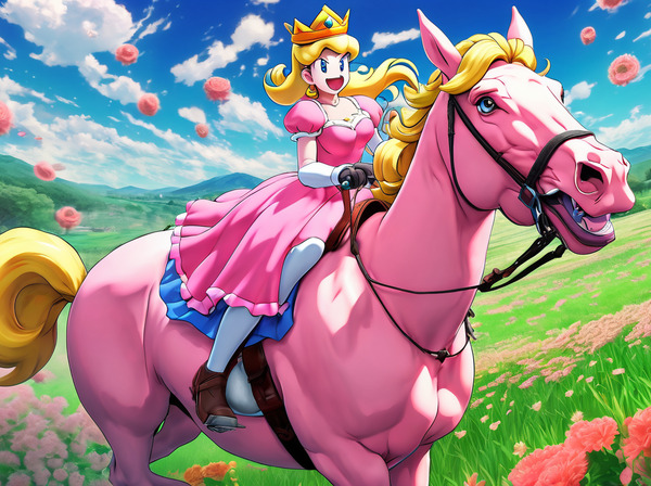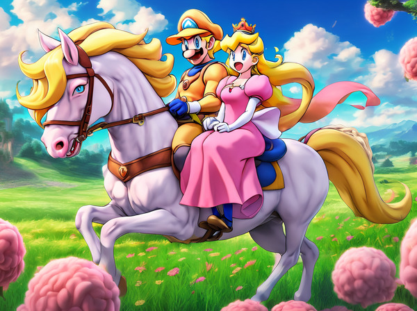 Princess Peach and Majin Boo riding a Horse in the Meadow -