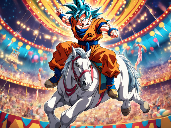 Piccolo and Kakarot flying with Nimbus in a Circus -