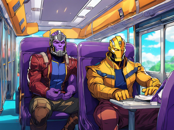 Son Goten and Trunks and Thanos watching TV in the Office -