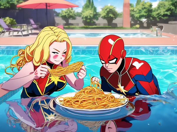 Son Goten and Trunks and The Avengers going Super-Saiyan fusion in the Swimming Pool -
