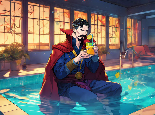 Doctor Strange and Piccolo going Super-Saiyan fusion in the Swimming Pool -