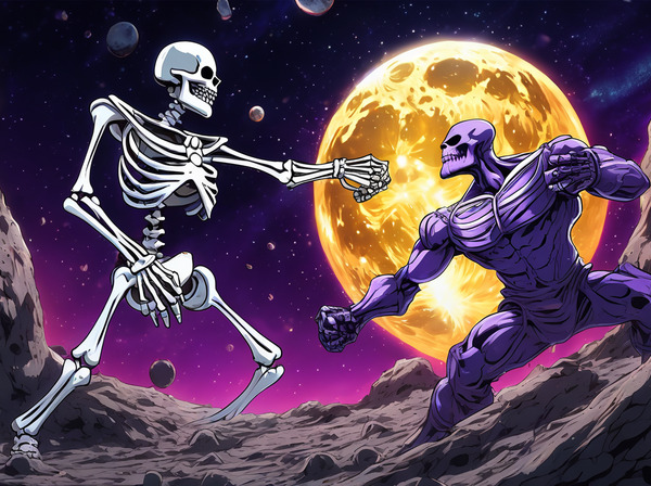 Majin Boo and Squirtle going Super-Saiyan fusion on the Moon -